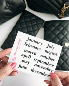 Classic font Monthly stickers in black (clear matte stickers)