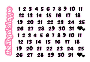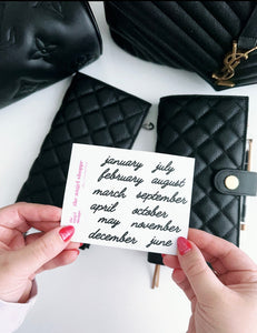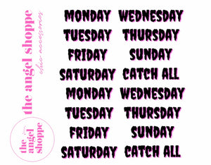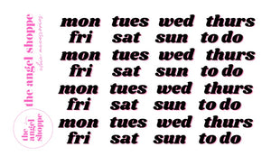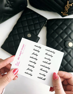 Cursive font days of the week (LONG) stickers in black (clear matte stickers)