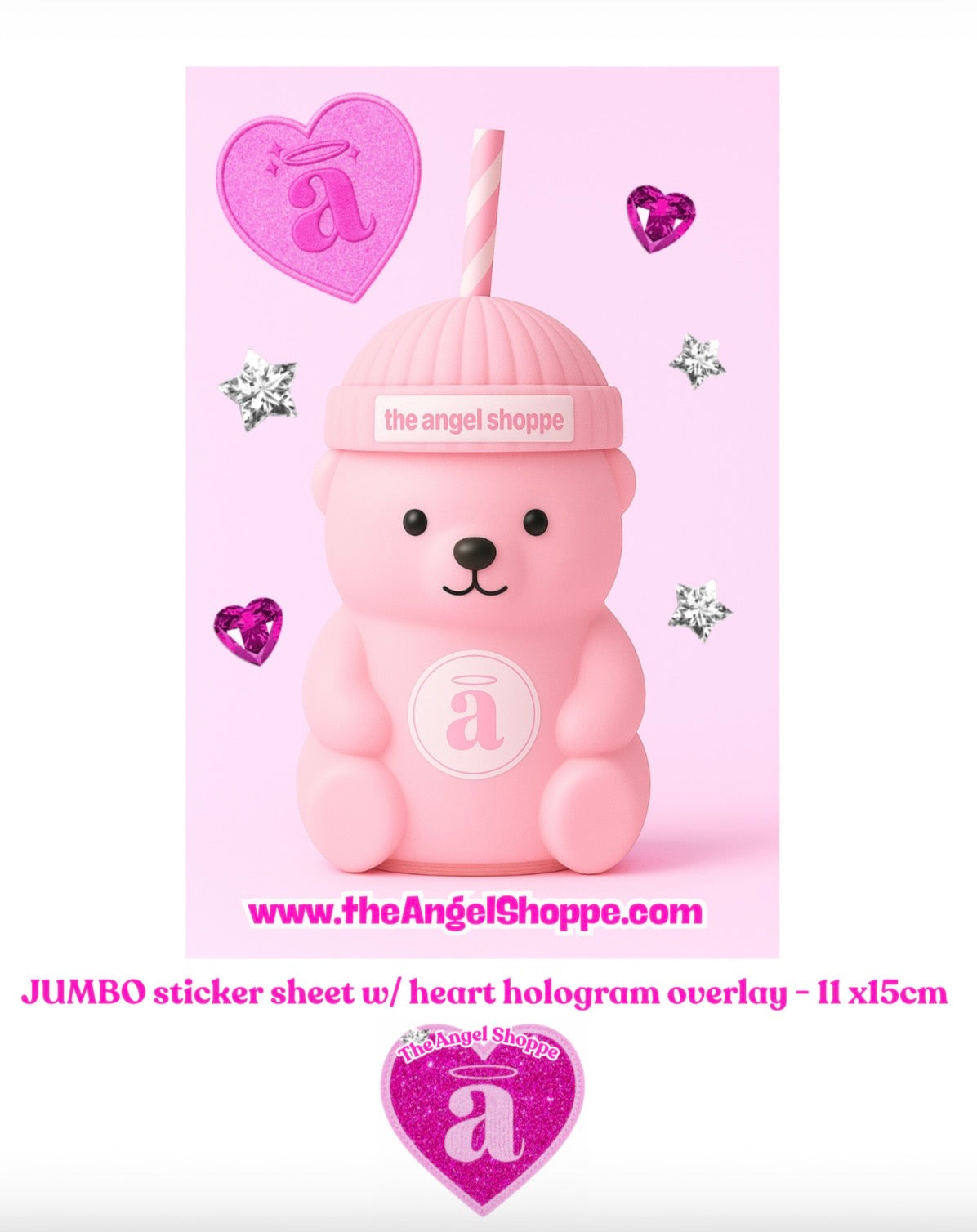 🩷 JUMBO bearista sticker with heart hologram overlay