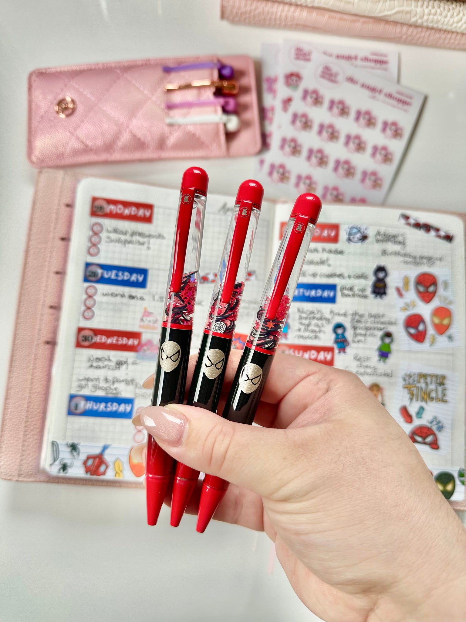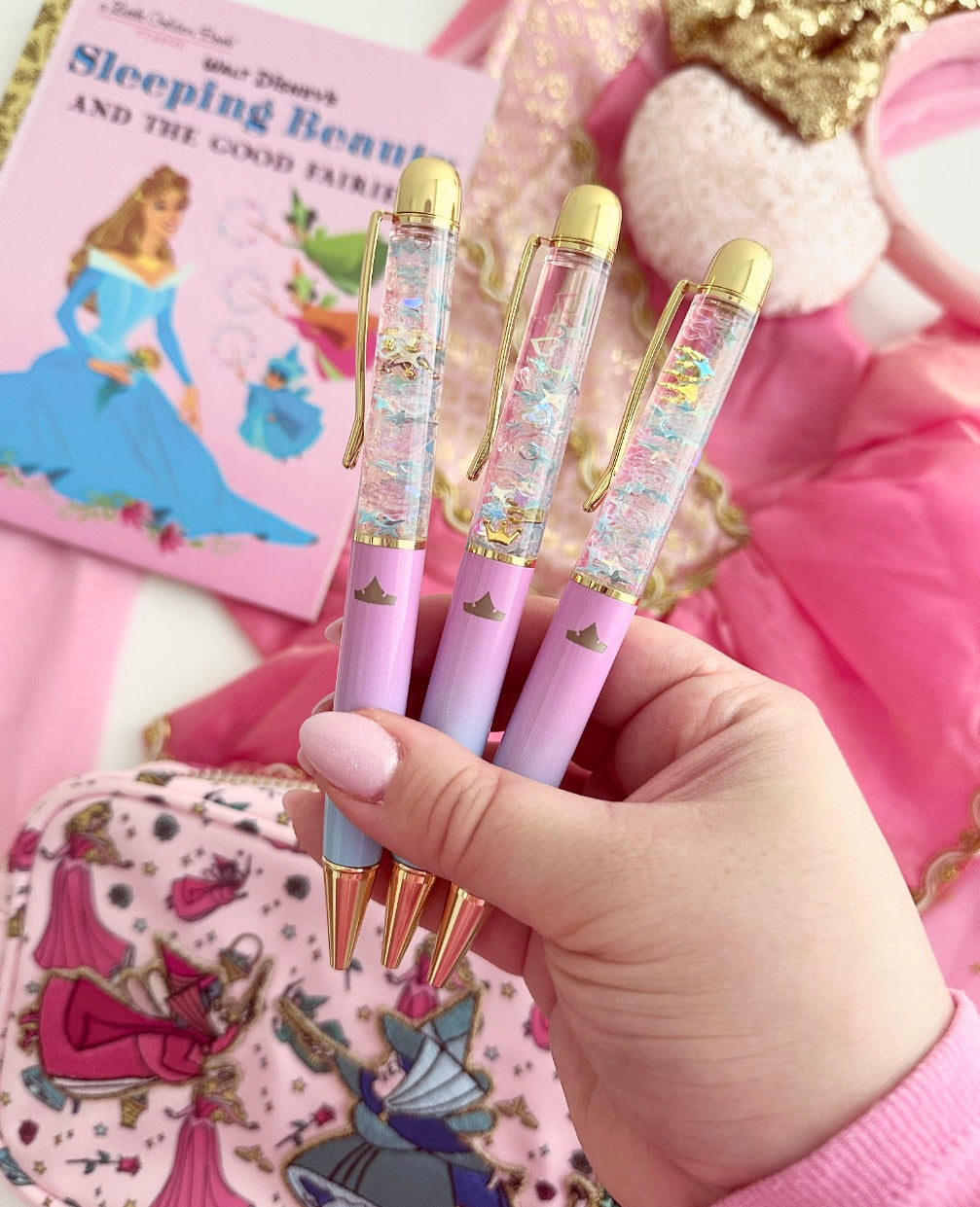 - 1 luxe velvet pouch in dusty rose pink, with rose gold foil to fit your pen exclusively designed by The Angel Shoppe. Available with each pen purchased.